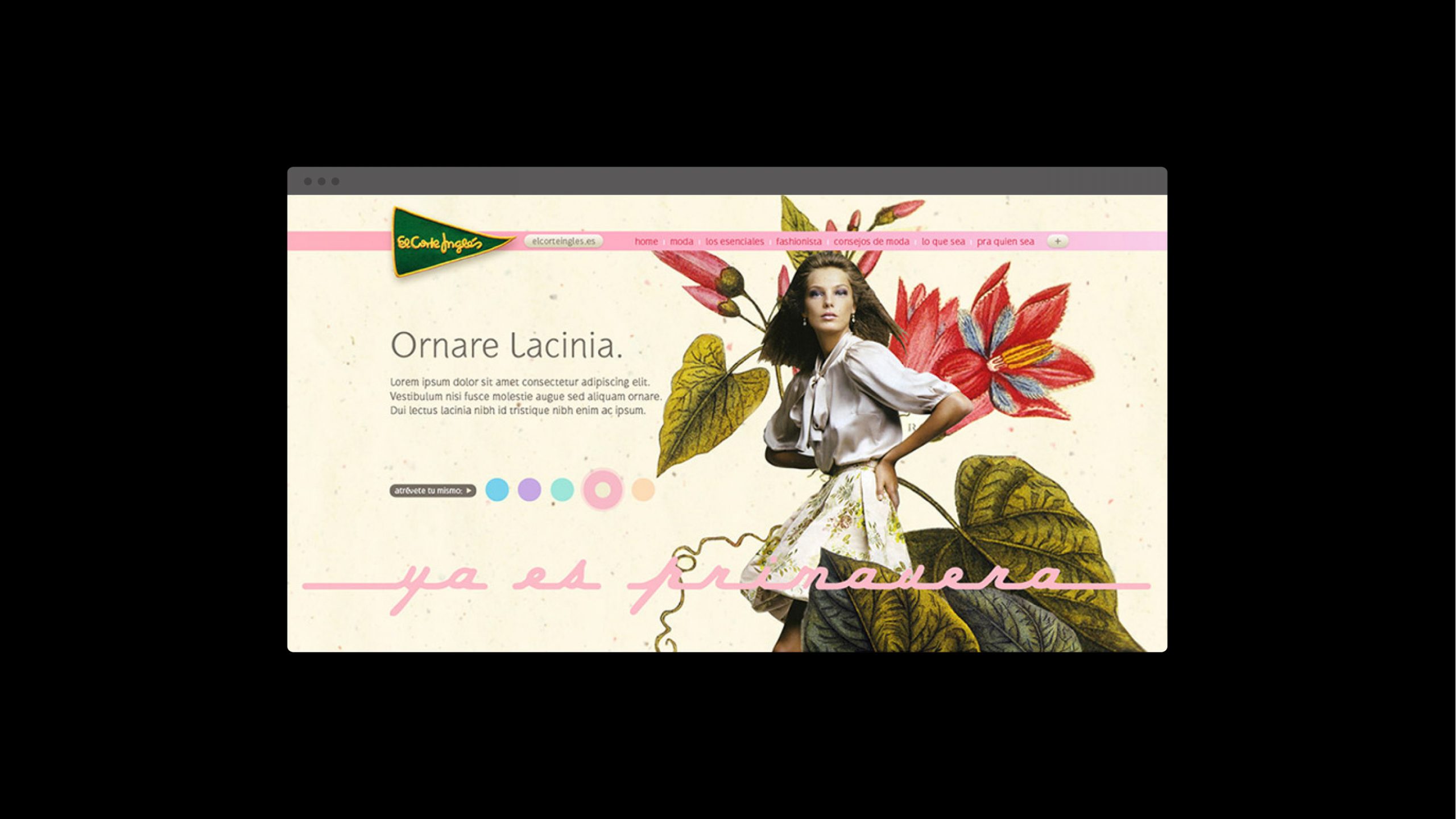 Project created at Tribal DDB Madrid for El Corte Inglés. I worked for over a year creating campaigns and projects like this website announcing the arrival of spring and all related products.